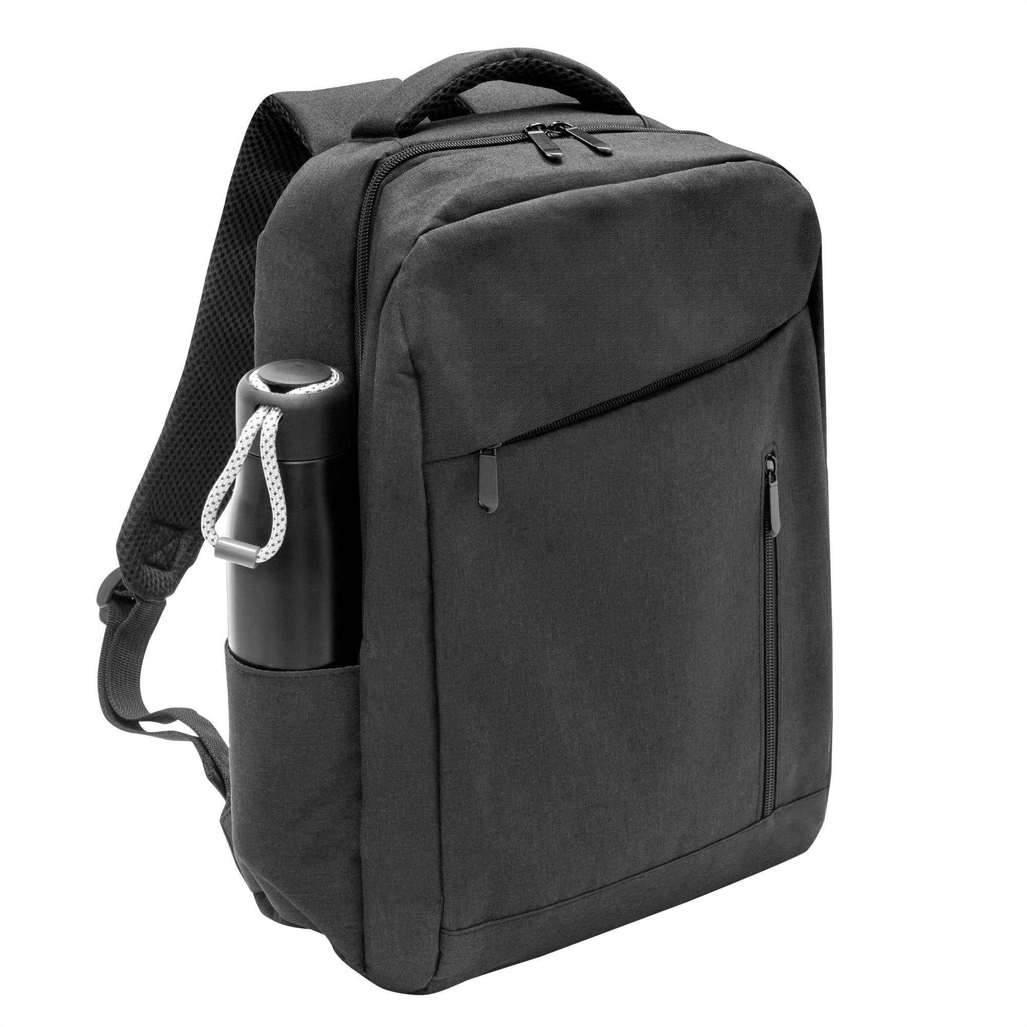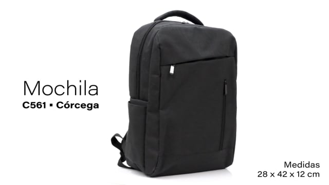 28 x 41 x 11 cm. Capacidad: 13 litros (Indica el volumen, NO el peso). Poliester 300D / PVC Wulong. Tela interior poliéster 210 D. Morral portanotebook hasta 15". Compartimento principal con bolsillo para notebook acolchado y bolsillo organizador. Frente con dos bolsillos, uno vertical y otro horizontal. Bolsillo lateral izquierdo. Asa superior, correas y respaldo acolchados. Correas ajustables. Tira para sujetar la mochila en la manija extensible de un equipaje de mano. Tiradores de cierres metálicos.