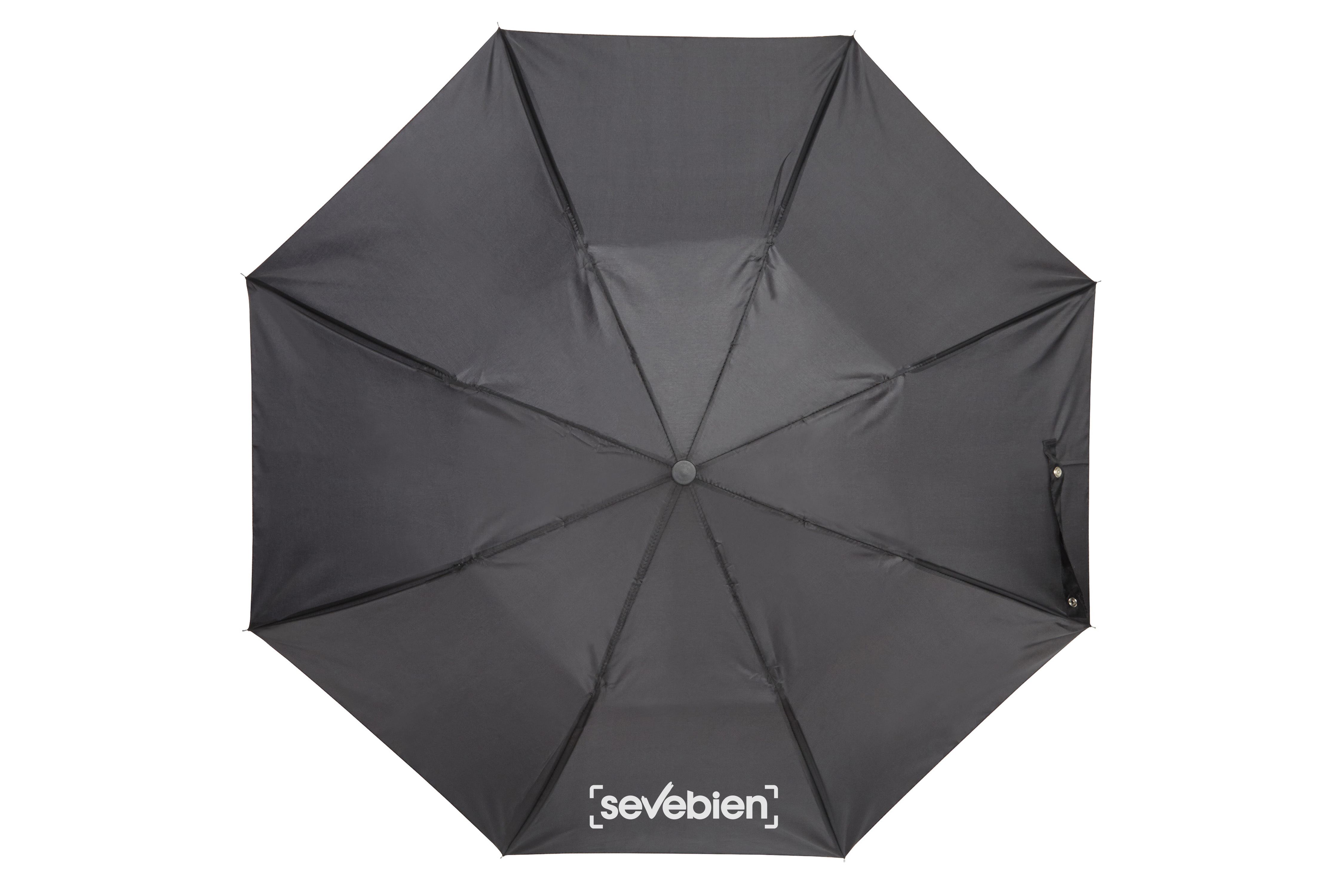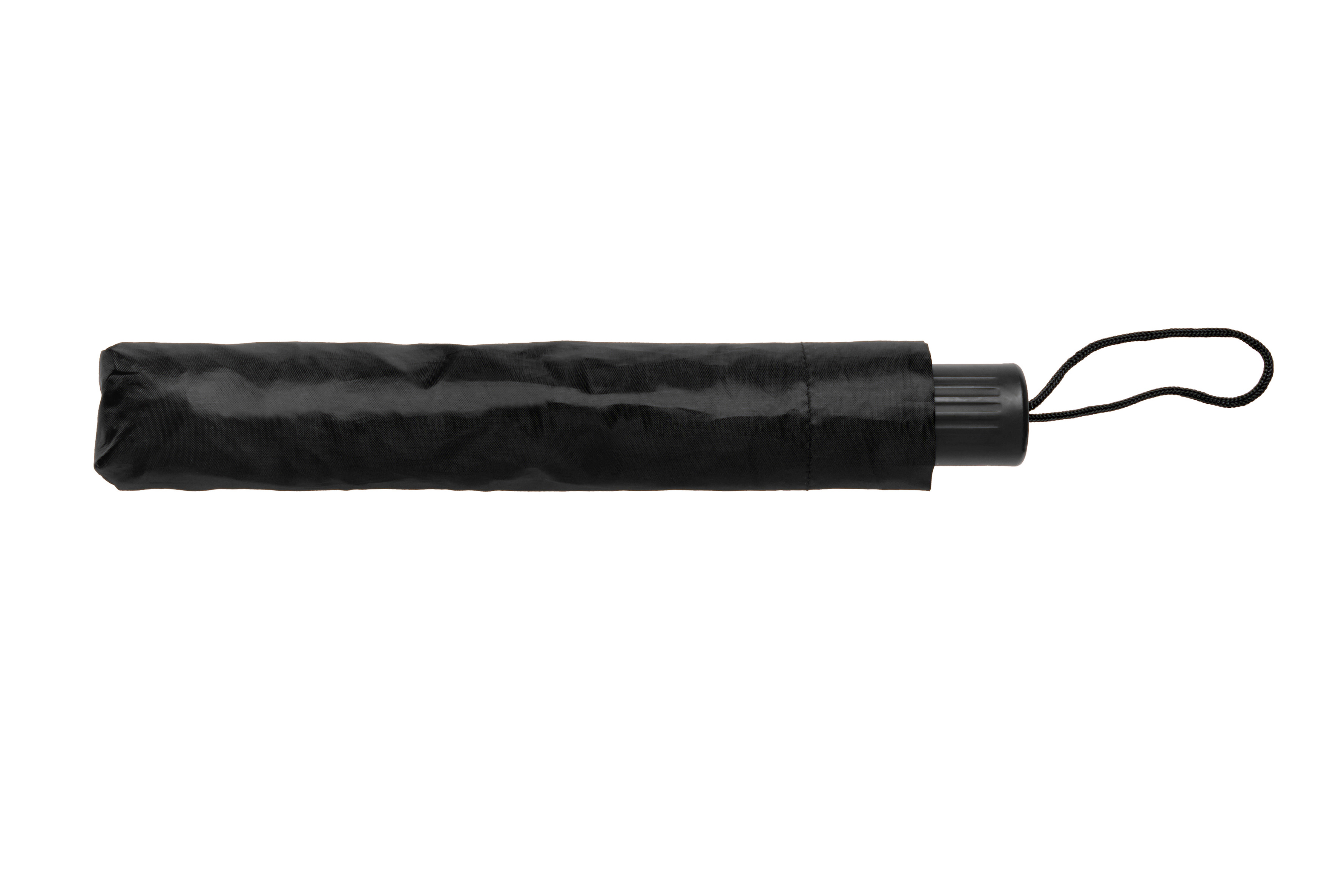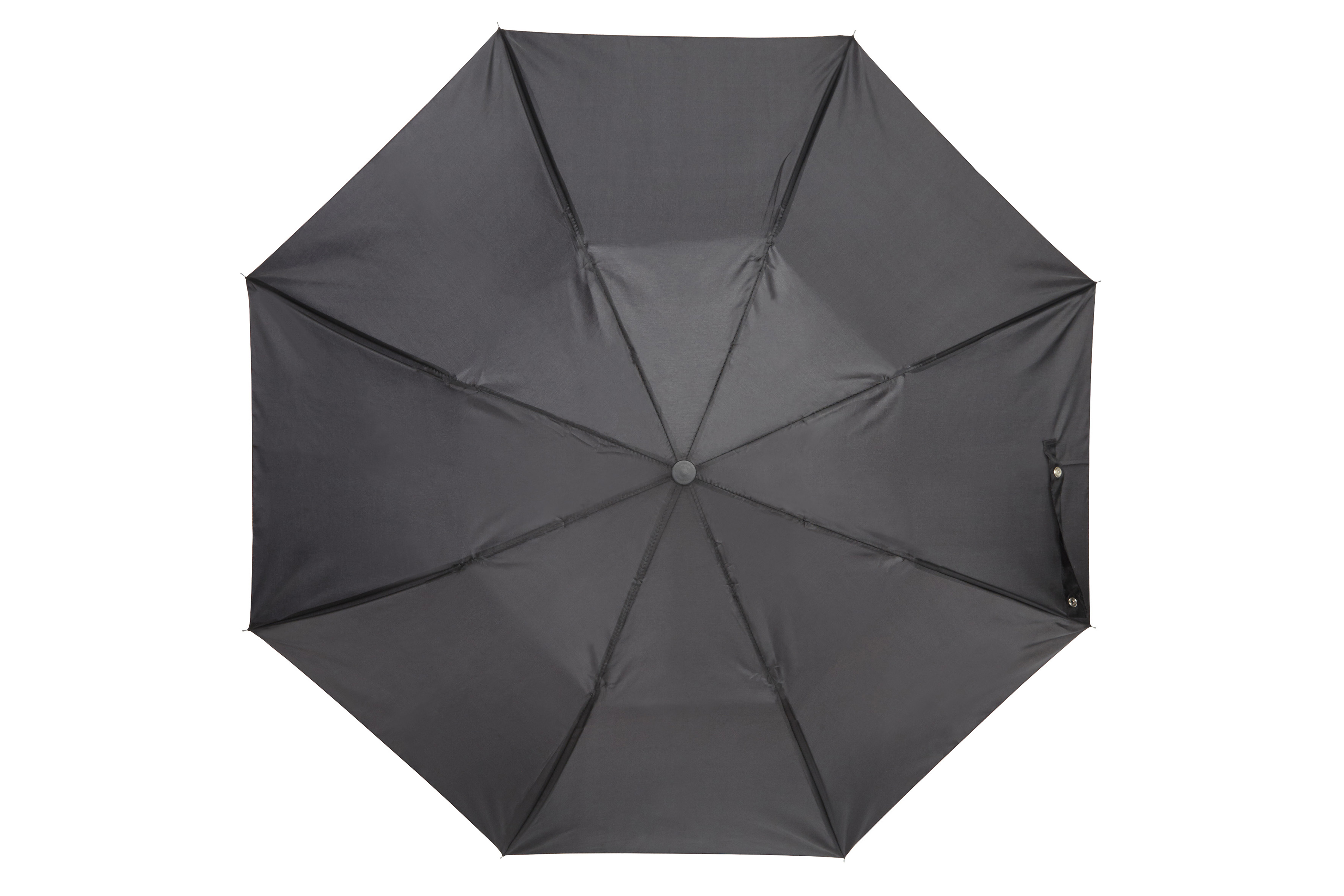 Ø 90 cm. Cerrado 32 cm. Poliéster.Extendido 50 cm. Estructura metálica 8 varillas. Plegable en tres partes. Mango plástico con cordón. Funda. APERTURA Y CIERRE MANUAL