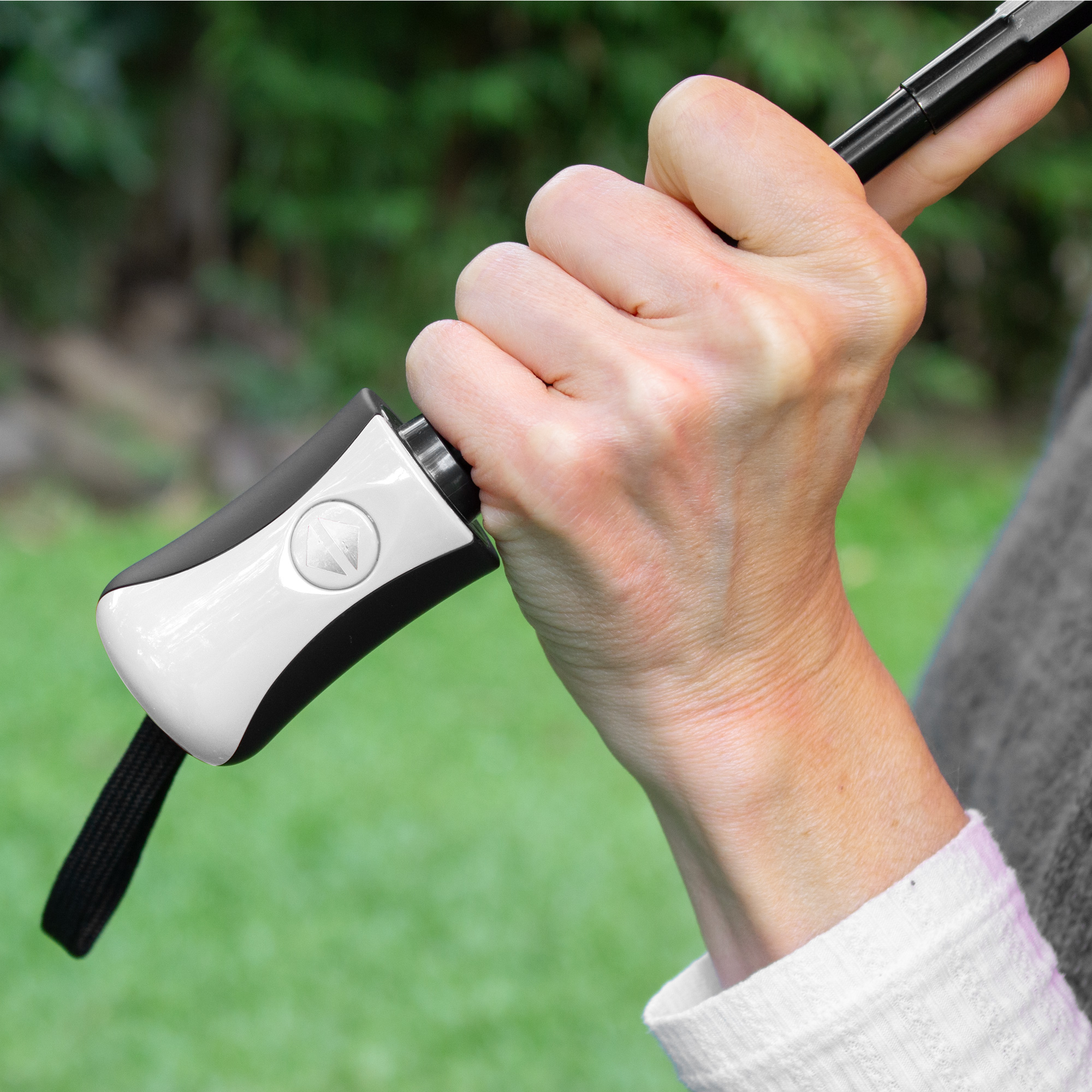 Paraguas APERTURA Y CIERRE AUTOMATICO. Eje metálico de color negro y varillas de fibra. Mango de plástico engomado con revestimiento de poliuretano color negro y detalles en color a tono con la tela, acabado brillante. Correa cordón color negro. Botón a presión. Tela con detalles en color negro. Cierre con correa de velcro.
